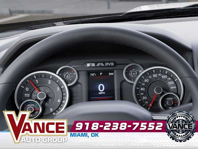 ENGINE: 6.7L I6 CUMMINS HO TURBO DIESEL Selective Catalytic Reduction (Urea), Dual 730 Amp Maintenance Free Batteries, Cummins Turbo Diesel Badge, Heavy Duty Engine Cooling, Diesel Exhaust Brake, Supplemental Heater, 3.42 Axle Ratio, Front Bumper Sight Shields, Capless Fuel Fill w/o Discriminator, GVWR: 11,040 lbs, BIG HORN LEVEL 1 PLUS EQUIPMENT GROUP Emergency Vehicle Alert System (EVAS), 12 Touchscreen Display, Glove Box Lamp, Auto Power-Folding Mirrors, Footwell Courtesy Lamp, Anti-Spin Differential Rear Axle, MOPAR Deployable Bed Step, Alexa Built-In, Forward & Reverse Utility Lights, Locking Lower Glove Box, Remote Start System, 9 Alpine Speakers w/Subwoofer, Disassociated Touchscreen Display, Dual Glove Boxes, 2nd Row In Floor Storage Bins, Rear View Auto Dim Mirror, Rear Dome w/On/Off Switch Lamp, LED Bed Lighting, GPS Navigation, SiriusXM w/360L, Connected Travel & Traffic Services, Foam Bottle Insert (Door Trim Panel), Big Horn IP Badge, Off-Road Info Pages, Trailer Tow Pages, HD Radio, Radio: Uconnect 5 Nav w/12.0 Display, Power Heated Folding Telescopic Mirrors, Steering Wheel Mounted, NIGHT EDITION Gloss Black Nostrils/Mic Black Grille, Tires: LT285/60R20E OWL On/Off Road, Black Exterior Truck Badging, Wheels: 20 x 8.0 Black Painted Aluminum, Body Color Grille-Surround, Black Interior Accents, Black Wheel Center Hub, Painted Front Bumper, Painted Rear Bumper, BLACK, PREMIUM CLOTH BUCKET SEATS Bucket Seats, Power Adjust 8-Way Driver Seat, Folding Flat Load Floor Storage, Rear 60/40 Folding Seat, Front Seat Back Map Pockets, Power 2-Way Driver Lumbar Adjust, Full Length Upgraded Floor Console, TRANSMISSION: 8-SPEED TORQUEFLITE HD AUTOMATIC.