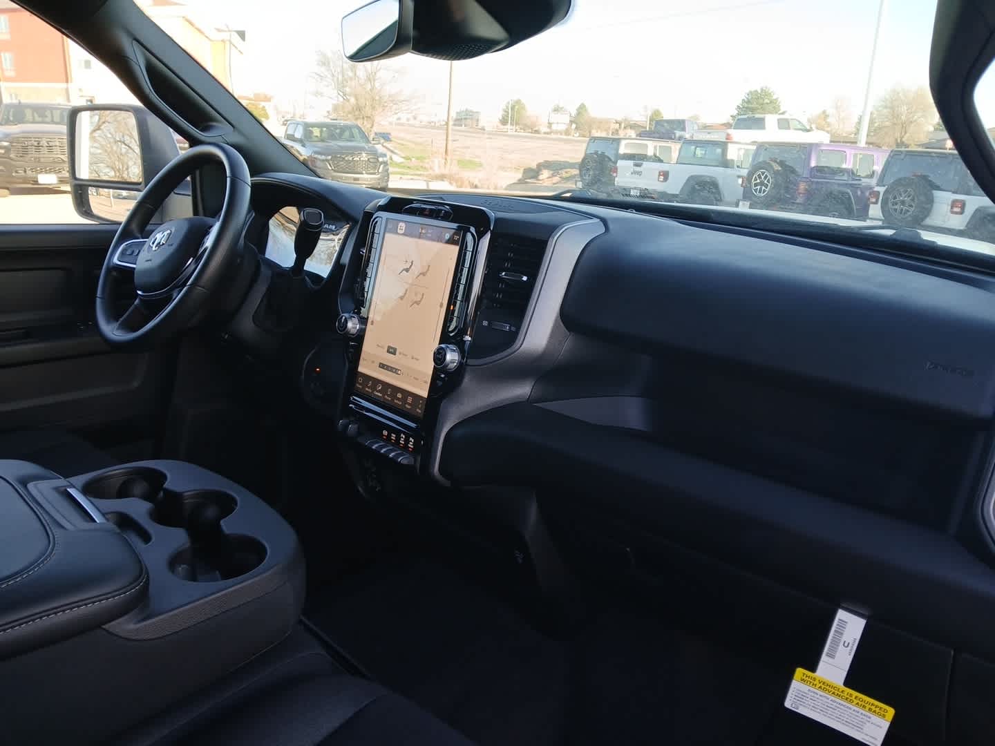 Convenience Group, For Details Visit DriveUconnect.com, For More Info, Call 800-643-2112, Emergency Vehicle Alert System (EVAS), 12 Touchscreen Display, Mirror Running Lights, Exterior 115V AC Outlet, Alexa Built-In, Power-Adjustable Convex Aux Mirrors, Disassociated Touchscreen Display, Matte Black Mesh w/Chrome Grille, 115V Auxiliary Front Power Outlet, Center Hub, Rear View Auto Dim Mirror, Rear Power Sliding Window, Tinted Acoustic Windshield Glass, GPS Navigation, Bright Rear Bumper, Exterior Mirrors w/Heating Element, Chrome Grille Surround, MOPAR Black Tubular Side Steps, SiriusXM w/360L, Connected Travel & Traffic Services, Carpet Floor Covering, Off-Road Information Pages, Trailer Tow Pages, 400W Inverter, HD Radio, Power Heat Fold Telescopic Mirrors, Radio: Uconnect 5 Nav, Clearance Lamps, Tires: LT235/80R17E BSW All Season, 17 Steel Spare Wheel, Box & Rear Fender Clearance Lamps, 6000# Front Axle w/Hub Ext, Nexen Brand Tires, GVWR: 14,000 lb, Rear Wheelhouse Liners, TRANSMISSION: 8-SPEED TORQUEFLITE HD AUTOMATIC, BLACK, CLOTH 40/20/40 BENCH SEAT.