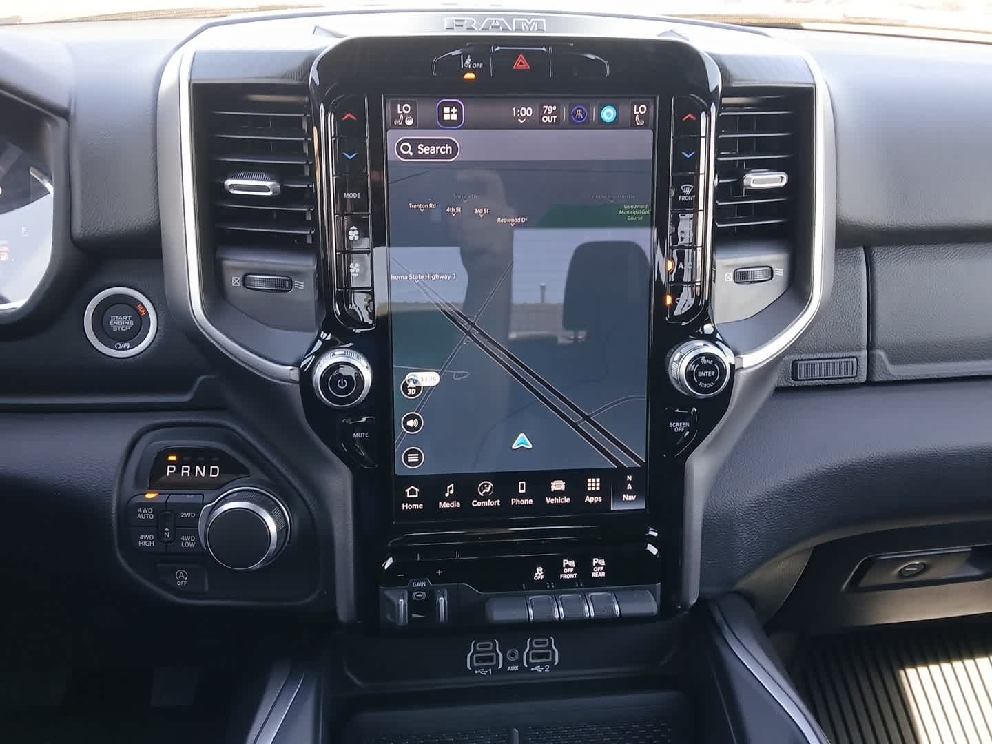 SiriusXM Radio Service, Power Adjustable Pedals, Leather Wrapped Steering Wheel, 12 Touchscreen Display, Glove Box Lamp, Auto Power-Folding Mirrors, 115V Auxiliary Rear Power Outlet, Media Hub w/2 Charge Only USBs, Heated Front Seats, Security Alarm, Black Premium Power Mirrors, Premium Overhead Console, 9 Amplified Speakers w/Subwoofer, Disassociated Touchscreen Display, Body Color Fender Flares, Remote Tailgate Release, 115V Auxiliary Power Outlet, LED Dome Lamp w/On/Off Switch, Universal Garage Door Opener, 2nd Row In Floor Storage Bins, Sun Visors w/Illuminated Vanity Mirrors, LED Footwell Lighting, Rear Window Defroster, Rear View Auto Dim Mirror, Rear Power Sliding Window, GPS Navigation, Overhead LED Lamps, Wheels: 20 x 9 Aluminum Chrome Clad (WRK), Tires: 275/55R20 OWL All, Active Noise Control System, Heavy Duty Engine Cooling, Passive Tuned Mass Damper, GVWR: 7,100 lbs, Dual Rear Exhaust w/Bright Tips, G/T Exhaust, 18 Aluminum Spare Wheel, Tires: 275/55R20 OWL All Season, Bridgestone Brand Tires, Accent Color Premium Power Mirrors, Exterior Mirrors w/Supplemental Signals, Black Headlamp Bezels, Exterior Mirrors Courtesy Lamps, Grille Black Surround Black Mesh, Auto Power-Folding Mirrors, Wheels: 20 x 9.0 Aluminum Painted Clad, Auto Dim Exterior Driver Mirror, Black Exterior Truck Badging, Anti-Spin Differential Rear Axle, Accent Color Door Handles, Accent Color Tailgate Handle, Black Interior Accents, Dual Exhaust w/Black Tips, Body Color Front Bumper, Body Color Rear Bumper w/Step Pads, Black Tail Lamp Bezels, RAM Grille Badge - Black, Black Painted Exterior Mirrors Caps, MOPAR BLACK TUBULAR SIDE STEPS, TRAILER BRAKE CONTROL, CLUSTER 12 TFT COLOR DISPLAY, MOPAR FRONT & REAR RUBBER FLOOR MATS, 3.92 REAR AXLE RATIO, TRANSMISSION: 8-SPEED AUTOMATIC (8HP75).