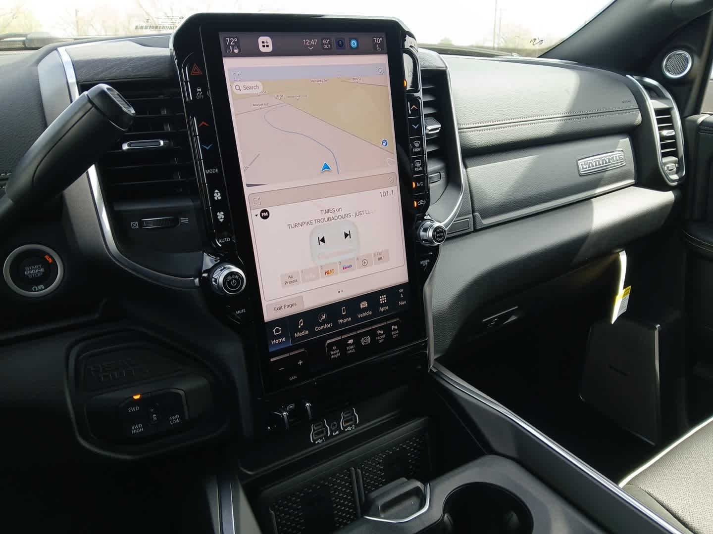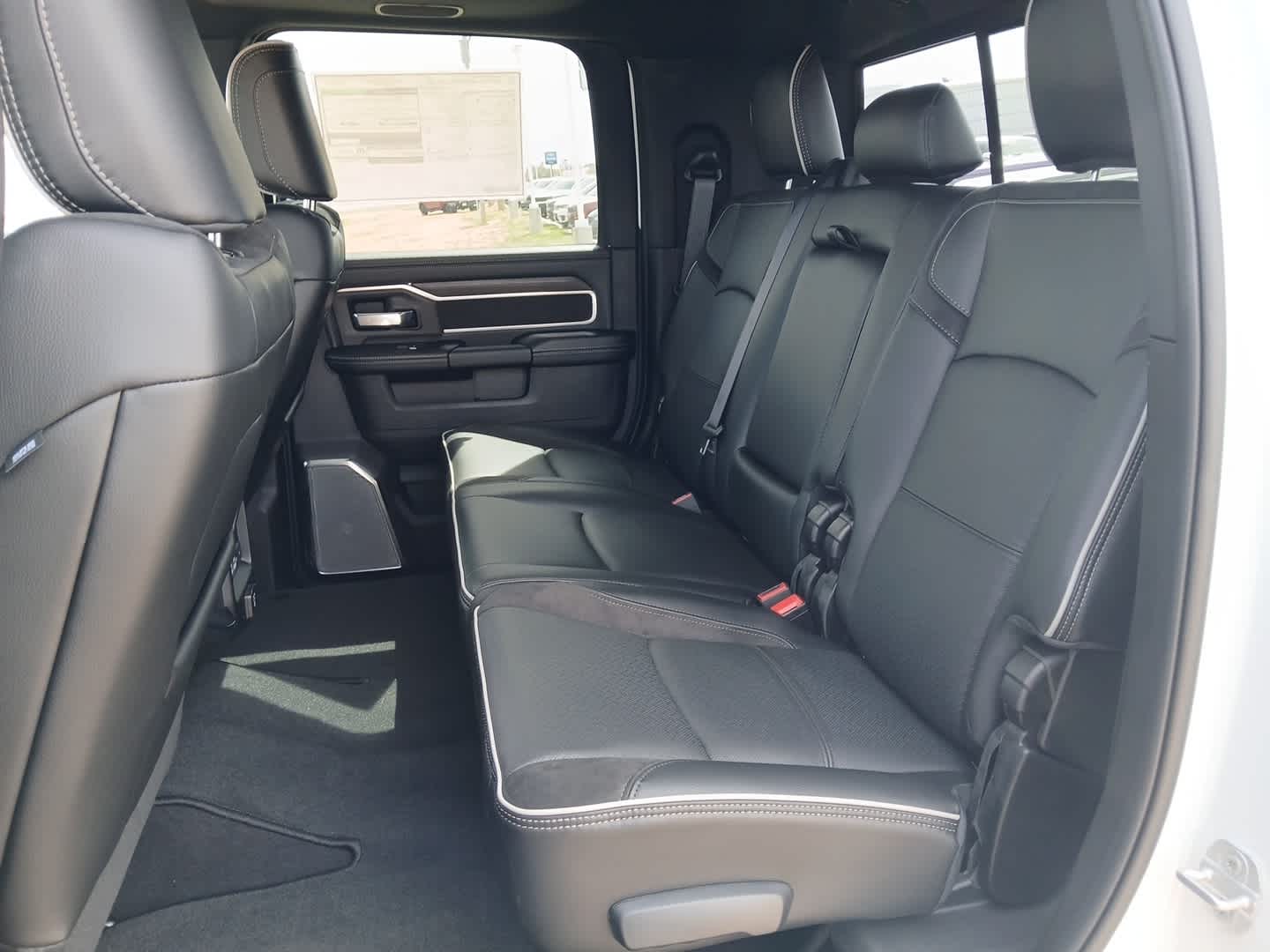 LARAMIE LEVEL 2 PLUS EQUIPMENT GROUP Power Adjustable Pedals w/Memory, Power Deployable Running Boards, Drowsy Driver Detection, MOPAR Deployable Bed Step, Active Lane Management System, Remote Tailgate Release, 17 Speaker harman/kardon® Premium Sound, Center Stop Lamp w/Cargo View Camera, Rain Sensitive Windshield Wipers, LED Bed Lighting, Traffic Sign Recognition, Adaptive Steering System, Auto Dim Exterior Mirror, Foam Bottle Insert (Door Trim Panel), 14.4 Touchscreen Display, Power Heated Folding Telescopic Mirrors w/Memory, Radio: Uconnect 5 Nav w/14.4 Display, MOPAR Spray In Bedliner, Auto High Beam Headlamp Control, Exterior Mirrors w/Memory, Auto Dim Exterior Passenger Mirror, Auto Adjust In Reverse Exterior Mirrors, DUAL REAR WHEELS Clearance Lamps, Tires: LT235/80R17E BSW All Season, 17 Steel Spare Wheel, Box & Rear Fender Clearance Lamps, Center Hub, 6,000 lbs Front Axle w/Hub Ext, Wheels: 17 x 6.0 Polished Aluminum, Nexen Brand Tires, GVWR: 14,000 lbs, POWER SUNROOF, TRANSMISSION: 8-SPEED TORQUEFLITE HD AUTOMATIC (STD), BLACK, LEATHER TRIMMED BUCKET SEATS Bucket Seats, Dual Wireless Charging Pad, Ventilated Front Seats, Radio/Driver Seat/Mirrors/Pedals Memory, Full Length Upgraded Floor Console.