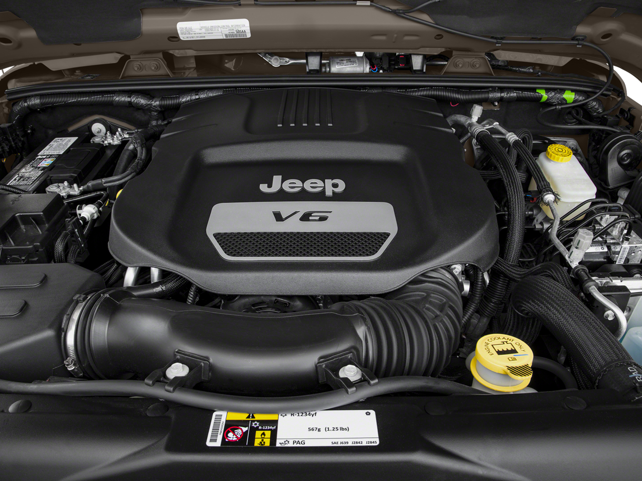 KBB.coms review says All have Chryslers smooth and strong 3.6-liter, 285-horsepower V6 engine which, thanks to excellent gearing and powertrain choices, provides the Wrangler with exceptional off-road capabilities..