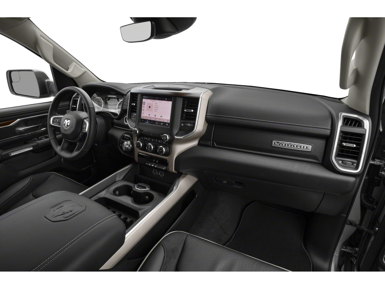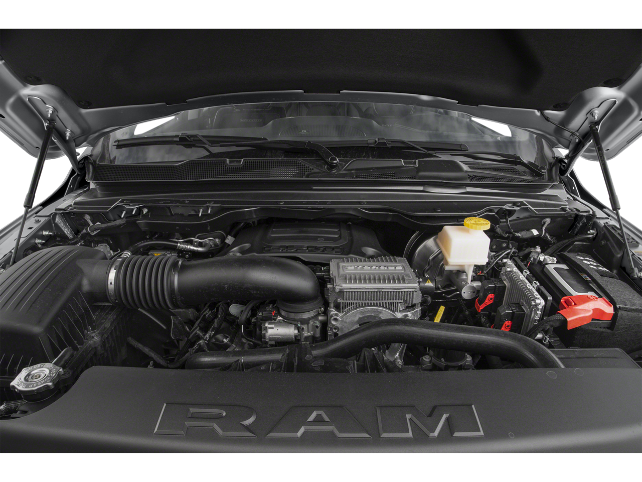 ENGINE: 5.7L V8 HEMI MDS VVT Active Noise Control System, Heavy Duty Engine Cooling, Passive Tuned Mass Damper, GVWR: 7,100 lbs, Dual Rear Exhaust w/Bright Tips, HEMI Badge, 220 Amp Alternator, SPORT APPEARANCE PACKAGE Tires: 275/55R20 OWL All Season, Body Color Premium Power Mirrors, Sport Performance Hood, Sport Decal, Body Color Door Handles, Wheels: 20 x 9 Premium Painted w/Inserts, Body Color Exterior Mirrors, Black Interior Accents, Body Color Front Bumper, Body Color Rear Bumper w/Step Pads, Grille Surround 3 Body Color Tex 2 Black, All Plant-Installed Decals, LARAMIE LEVEL 1 EQUIPMENT GROUP Remote Tailgate Release, Rear Underseat Compartment Storage, Auto High Beam Headlamp Control, Blind Spot & Cross Path Detection, Rain Sensitive Windshield Wipers, ParkSense Front/Rear Park Assist w/Stop, Foam Bottle Insert (Door Trim Panel), Rear 60/40 Folding Split Recline Seat, BLACK, LEATHER TRIMMED BUCKET SEATS Bucket Seats, Full Length Upgraded Floor Console, ANTI-SPIN DIFFERENTIAL REAR AXLE, TRANSMISSION: 8-SPEED AUTOMATIC (8HP75). Ram Laramie with Diamond Black Crystal Pearlcoat exterior and Black interior features a 8 Cylinder Engine with 305 HP at 6400 RPM*.