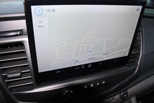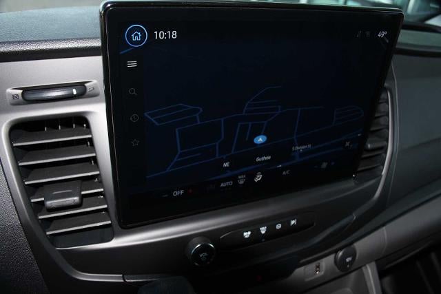 RADIO: AM/FM STEREO W/SYNC 4 12 multi-function display, Bluetooth®, dual USB ports, embedded voice recognition, connected navigation and 4 speakers (front), Electronic Air Temperature Control, 3.73 LIMITED-SLIP AXLE RATIO, REVERSE SENSING SYSTEM, KEYLESS ENTRY KEYPAD, DARK PALAZZO GRAY VINYL BUCKET SEATS W/ARMRESTS 2-way manual driver seat and 2-way manual passenger seat, TRANSMISSION: 10-SPD AUTOMATIC W/OD & SELECTSHIFT auxiliary transmission oil cooler (STD), HIGH RESOLUTION DIGITAL CAMERA. Ford Transit Cargo Van with Oxford White exterior and Dark Palazzo Gray interior features a V6 Cylinder Engine with 275 HP at 6250 RPM*.