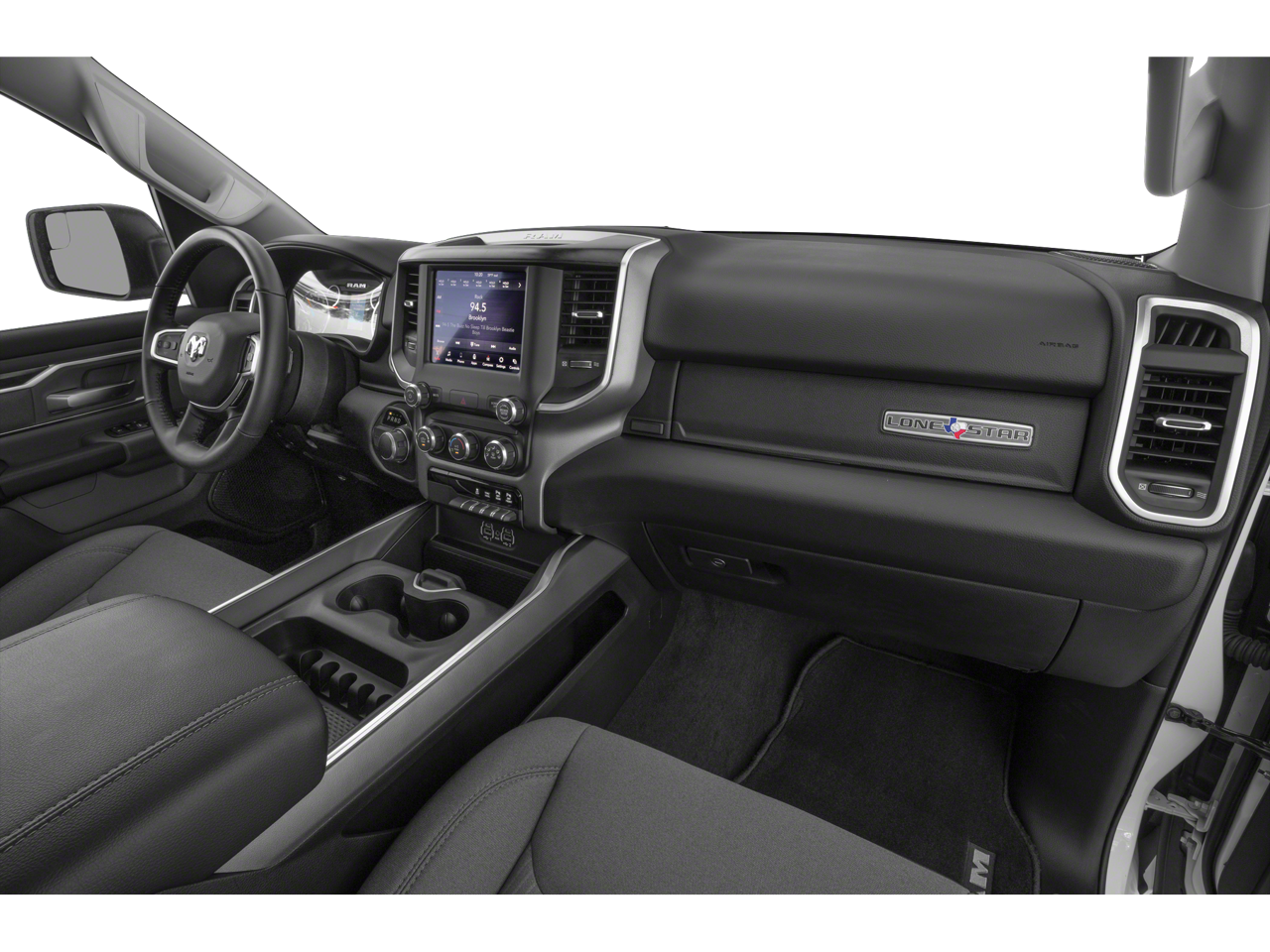 BIG HORN LEVEL 2 EQUIPMENT GROUP SiriusXM Radio Service, Rear Window Defroster, ParkSense Front/Rear Park Assist w/Stop, Rear View Auto Dim Mirror, Power Adjustable Pedals, For More Info, Call 800-643-2112, Rear Power Sliding Window, Rear Dome w/On/Off Switch Lamp, Glove Box Lamp, Power 4-Way Driver Lumbar Adjust, 115V Auxiliary Rear Power Outlet, Media Hub w/2 Charge Only USBs, Power 8-Way Driver Seat, Auto Dim Exterior Driver Mirror, Heated Front Seats, Heated Steering Wheel, Foam Bottle Insert (Door Trim Panel), Class IV Receiver Hitch, Security Alarm, Black Premium Power Mirrors, Big Horn IP Badge, Remote Start System, SiriusXM Satellite Radio, Exterior Mirrors w/Supplemental Signals, Exterior Mirrors Courtesy Lamps, Air Conditioning ATC w/Dual Zone Control, 115V Auxiliary Power, ENGINE: 5.7L V8 HEMI MDS VVT ETORQUE Active Noise Control System, Heavy Duty Engine Cooling, GVWR: 7,100 lbs, Dual Rear Exhaust w/Bright Tips, HEMI Badge, 23 Gallon Fuel Tank, 18 Aluminum Spare Wheel, NIGHT EDITION Tires: 275/55R20 OWL All Season, Accent Color Premium Power Mirrors, Exterior Mirrors w/Supplemental Signals, Black Headlamp Bezels, Exterior Mirrors Courtesy Lamps, Auto Dim Exterior Driver Mirror, Black Exterior Truck Badging, Anti-Spin Differential Rear Axle, Wheels: 20 x 9.0 Premium Paint/Polished, Exterior Mirrors w/Memory, Black Interior Accents, Dual Exhaust w/Black Tips, Power-Folding Mirrors, Body Color Front Bumper, Body Color Rear Bumper w/Step Pads, Black Painted Exterior Mirrors Caps, REMOTE START SYSTEM, TRANSMISSION: 8-SPEED AUTOMATIC (8HP75), BLACK, DELUXE CLOTH BUCKET SEATS Power 8-Way Driver Seat, Center Console Parts Module, Bucket Seats, Manual Adjust 4-Way Front Passenger Seat, Full Length Floor Console, Power 4-Way Driver Lumbar Adjust, RADIO: UCONNECT 4 W/8.4 DISPLAY.